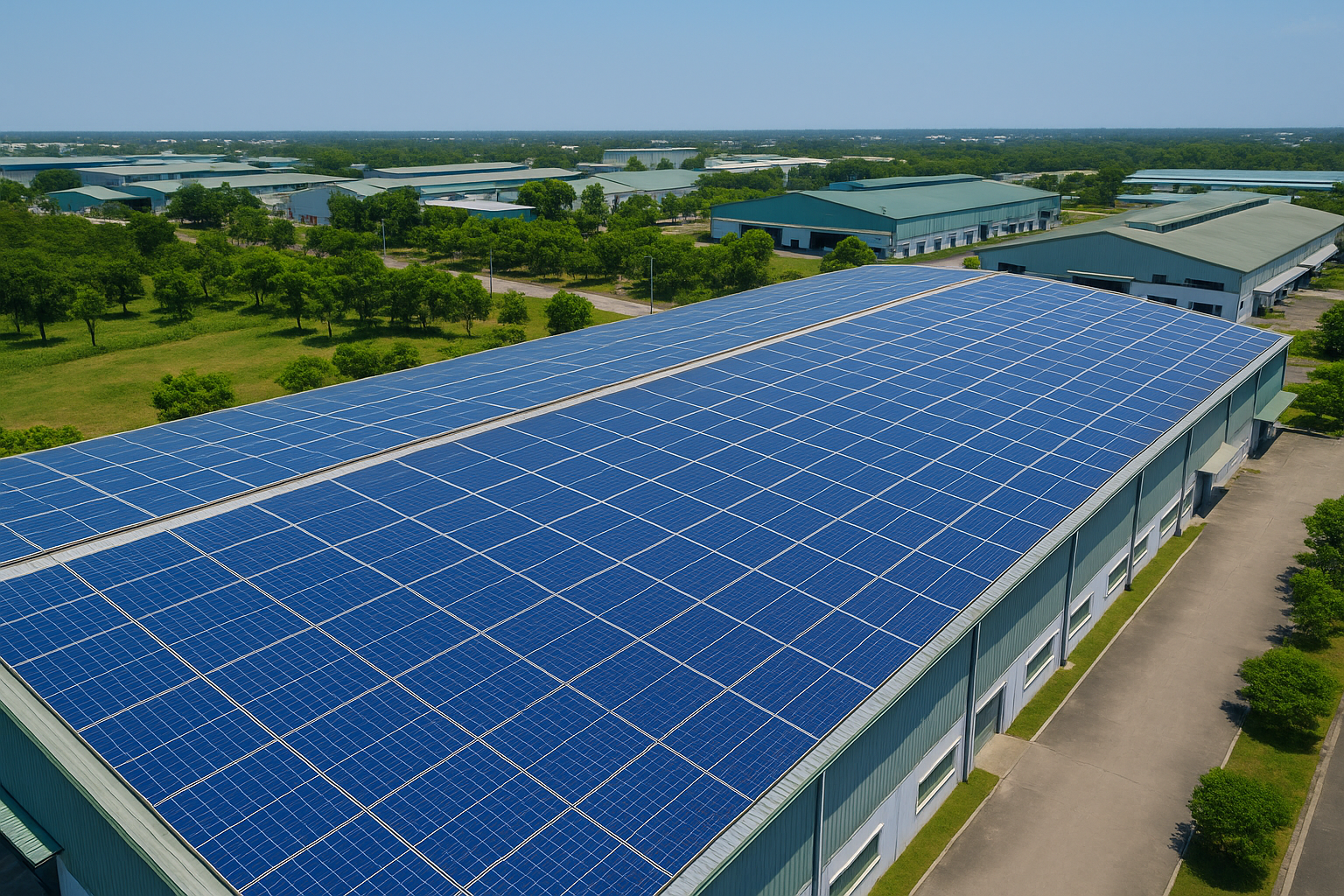 Khu công nghiệp VSIP I, VSIP II, VSIP II-A, Mỹ Phước… với các dự án áp mái có công suất từ vài trăm kWp đến hàng MWp, giúp doanh nghiệp giảm hàng nghìn tấn CO₂ phát thải mỗi năm và tiết kiệm đáng kể chi phí điện.vsses.com+1